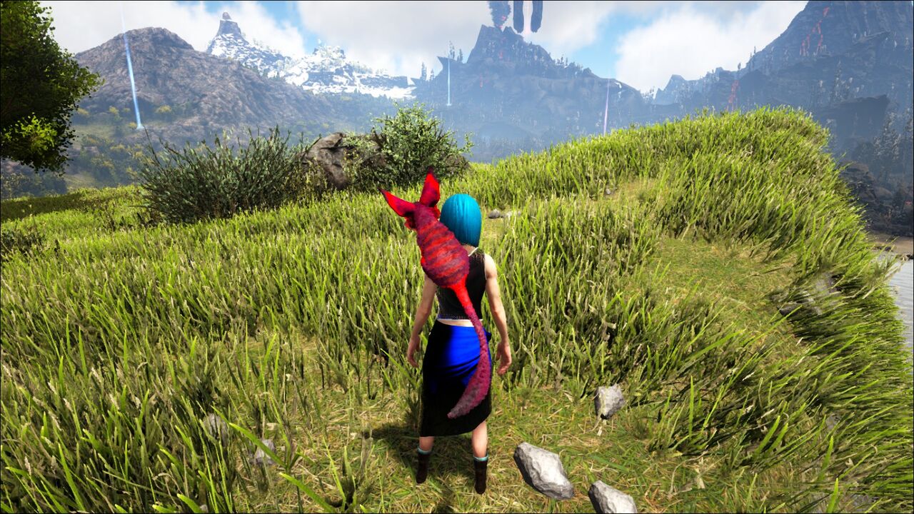 すると、遠くの方に 人柱が!(勝手に呼んでますサバイバー死んだときの光の柱です)